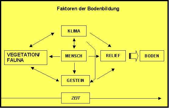 Kinder finden ihn herrlich, v.a. als Matsch, Erwachsene treten ihn hingegen meistens mit Füßen und wenn er dann an den Schuhen klebt wird er bloß noch als Dreck bezeichnet: Die Rede ist vom Boden. Er ist allgegenwärtig und doch nimmt der Mensch ihn meistens nicht bewusst wahr. Er empfindet den Boden als eine Selbstverständlichkeit in seinem Leben, als einen vertrauten Bestandteil der Umwelt, für den man nichts tun muss, der einfach da ist, ohne große Pflege. Die Bodencharta des Europarates zählte im Jahr 1972 den Boden zu den kostbarsten Gütern der Menschheit, die es zu schützen gilt. Und dies mit Recht, denn der Boden stellt neben dem Wasser und der Luft die wichtigste Lebensgrundlage des Menschen dar. Eigentlich ist er sogar noch wichtiger als Wasser und Luft, denn unser Trinkwasser wird im Boden gereinigt und aufbewahrt und Pflanzen, die uns den Sauerstoff liefern, wachsen auf dem Boden. Aber wenn Menschen über die direkte Nutzbarkeit des Boden reden, dann kommen oft ganz andere Funktionen zur Sprache: der Boden als Baugrund, Deponierungsbasis, Lagerstätte, land- und forstwirtschaftlichem Standort, Basis für Freizeit und Erholung (vgl. Tab 2). Der Boden ist aber für das Funktionieren des gesamten Ökosystems wichtig. Zwar wurde mit dem Bundesbodenschutzgesetz im Jahr 1998 ein rechtlicher Rahmen für den Bodenschutz geschaffen, dennoch wird bodenkundlichen Sachverhalten im Vergleich zu den Elementen Luft und Wasser, noch zu wenig Bedeutung geschenkt. Denn obwohl der Boden so wichtig ist und auf alle anderen Ökofaktoren einwirkt, werden Böden heute von allen Seiten bedrängt, verbaut, zubetoniert, vergiftet, überdüngt und verdichtet. Lange Jahre hat dies vermeintlich keine Spuren hinterlassen, doch lässt sich der Boden - im Gegensatz zu Luft oder Wasser - nicht reinigen: Vergifteter Boden bleibt vergiftet, verlorener Boden bleibt verloren! Um dies zu verstehen müssen wir uns vielleicht erst mal die Frage stellen: Was ist überhaupt ein Boden? Was ist Boden?Zunächst müssen wir wissen, dass Boden nicht einfach da ist, sondern dass er über viele Jahrhunderte entstanden und immer noch in Veränderung und Weiterentwicklung begriffen ist. Boden entsteht dort, wo Gestein verwittert und sich Pflanzen ansiedeln, die allmählich eine Humusschicht bilden. Die Pflanzen tragen dann ihrerseits z.B. durch Vewurzelungsaktivitäten oder ausgeschiedene Säuren zur weiteren Verwitterung des Gesteins bei und je weiter das Gestein verwittert und je mehr Humus sich bildet desto mehr und höhere Pflanzen können sich dort ansiedeln. Allmählich haben wir dann eine Verwitterungsschicht, die aus mineralischen und organischen Substanzen besteht, mit Luft, Wasser und Lebewesen durchsetzt ist und eine gewisse Struktur aufweist. Diesen allmählich gewachsenen Teil der Erdoberfläche nennen wir Boden. Er stellt also im wesentlichen das Ergebnis von Umwandlungsprozessen dar. Wie diese Umwandlungsprozesse sich vollziehen hängt wiederum davon ab, wie das Ausgangsgestein beschaffen ist aber auch von der Beschaffenheit sämtlicher anderer Faktoren, die hierbei eine Rolle spielen, also z.B. dem Klima oder der Vegetation. Wir können uns schon leicht vorstellen, dass auf einem Kalkgestein ein anderer Boden entsteht als auf einem vulkanischen Gestein, und dass in Gebieten mit viel Regen oder hohen Grundwasserständen andere Böden gedeihen als in trockenen Gebieten. Man kann die Unterschiede an einem offengelegten Boden sehr gut erkennen: der senkrechte Aufbau des Bodens im Anschnitt - der Bodenkundler nennt dies Profil - zeigt eine Abfolge verschiedener Horizonte. Die jeweilige Horizontabfolge trägt dem Entwicklungsstadium des Bodens Rechnung und eignet sich deshalb zur Kennzeichnung von Böden und zur Unterscheidung verschiedener Bodentypen. Zwei Bodentypen wollen wir hier zum Vergleich einmal kennen lernen:
